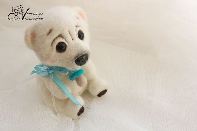 Фелтинг (валяние шерсти)Вот такой новорожденный мишутка по имени Матвей появился на свет :) наверно рождение пятого племянника не прошло для меня даром :)