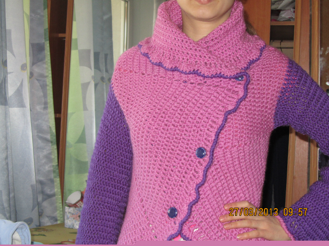 я пока еще не НОСИЛА ее,так,примерила,еще как понимаете не погода...но вот я сделала именно на пуговках.т к если прям как в описании,там одна пуговка,и не думаю что удобно будет..так,вид только,а я с ребенком,вечно ж побежать,взять на руки,запутаться можно))))))))а тут ничего не мешает,не жмет и не болтается))))))я сестричке вяжу подобеую,завтра может выложу,красиво,надеюсь удобно