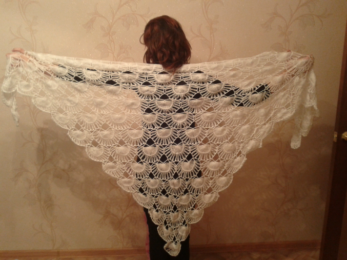 Шаль белая. Связан на вилке 7см. Нитки Ангора Голд от Ализе. Размер шали 2м х1,5м.