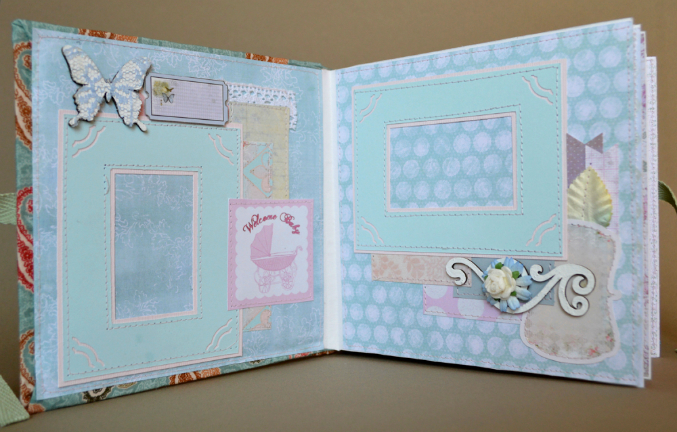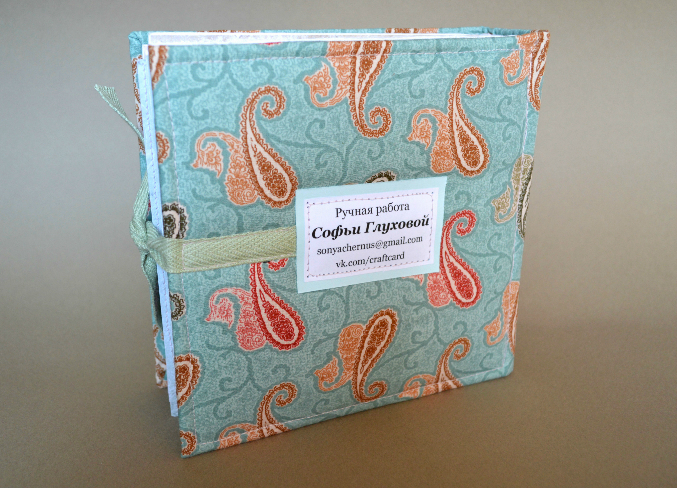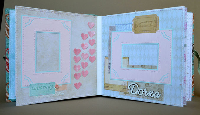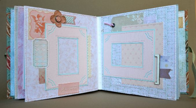 Скрапбукингальбом 15*15 см. 7 разворотов и 14 страниц, на которых могут разместиться 14 фото 10*7.5 см.