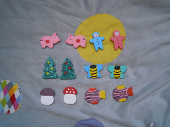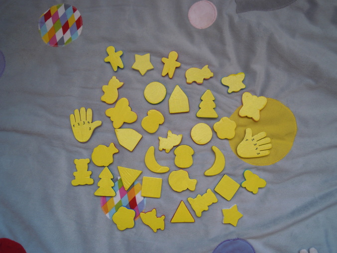 Кроме того можно играть без мешочков, одними фигурами. С одной стороны у меня все фигурки одинакового цвета, искать пары по контуру. Пар- 17