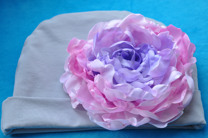Шапочка цвет "светло серый" + цветок. Цена 750 руб (Продано, возможен повтор)