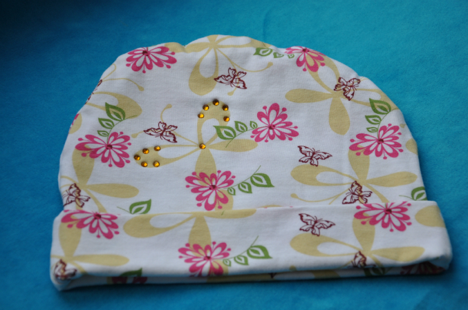1. липучка (лента велкро) - одна часть пришивается к шапочке, другая на основнии цветка. Это дает возможность менять цветы, но исключает варинт ношения шапочки без цветка.
