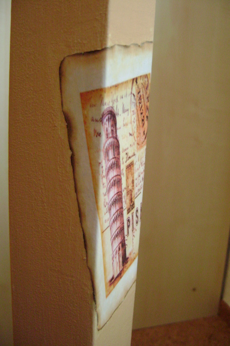 - пошкурила, загрунтовала и покрасила места приклеивания картинок