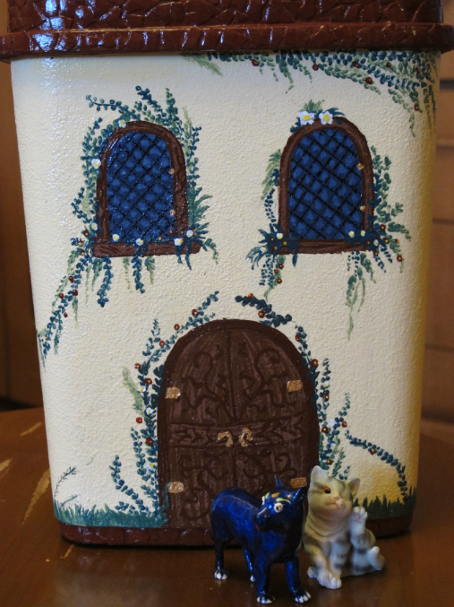 9. Нарисовала окна и цвери, дорисовала зелень и цветы. Трафаретом сделала узор на "балконе"