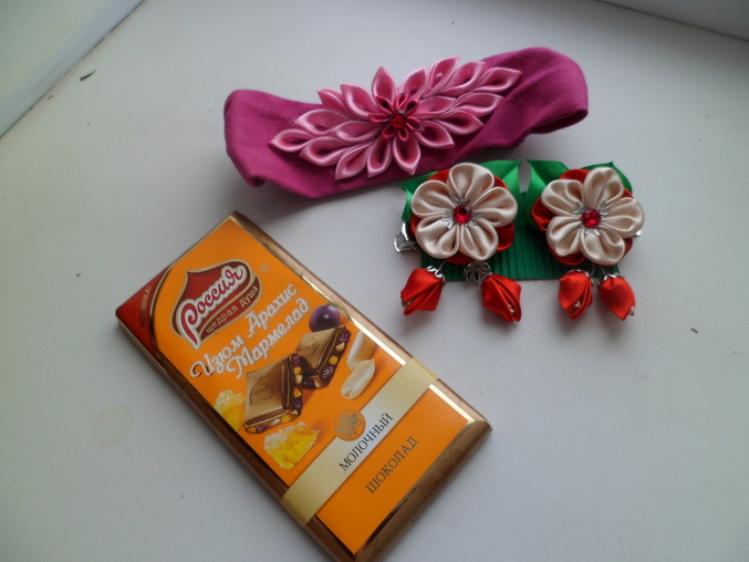 Наташ,ты настоящая ФЕЯ,сколько красоты сделала своими золотыми ручками!!!! спасибо тебе огромное! заколочки уже одели в садик,шоколадка тут же была съедена (еле уговорила сфоткать), все очень понравилось,дочка в восторге. еще фото более детально