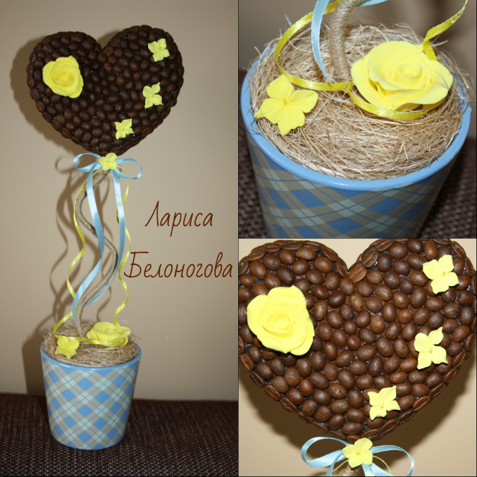 Сама в инете откопала, я б сама тоже не догадалась)) И еще маленький мой секретик: чтобы не обклеивать зернами на 2 слоя, я заготовки обклеиваю молотым кофе на ПВА)))
