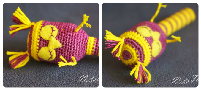 А вязать мы будем погремухи!!! У меня есть заказик на букет погремух... В итоге навязались вот такие совушки-сплюшки-погремушки!!!