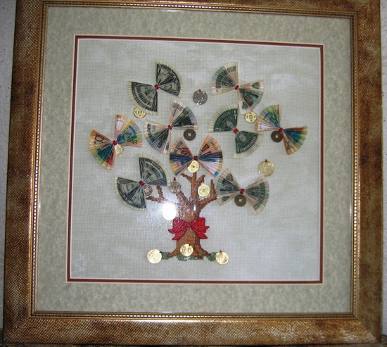 еще денежное дерево вышивают. У меня это мульти дерево как 3 валюты на нем, денежки настоящие )))