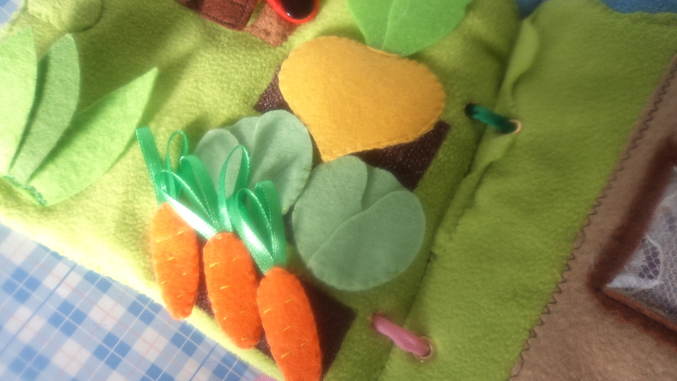 Понравилось то, что она почти полностью из флиса и переплет на люверсах! Если бы я шила книжку,тоже сделала бы каждый листик отдельным, мне кажется малышу так удобней с ней играть))) Съемных элементов как много! Здорово!