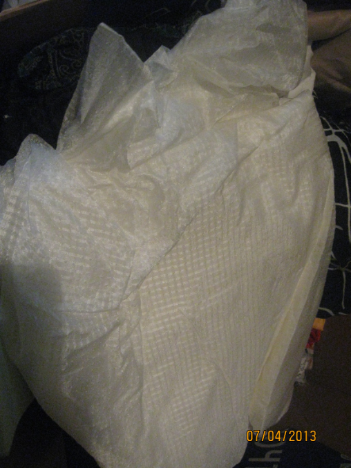 кстати белая с черными отметинами-это оказалась недошитая рубашка мужская))) перед и спинка.....ну для рукоделия пойдет.....похоже мама кому0то шила....