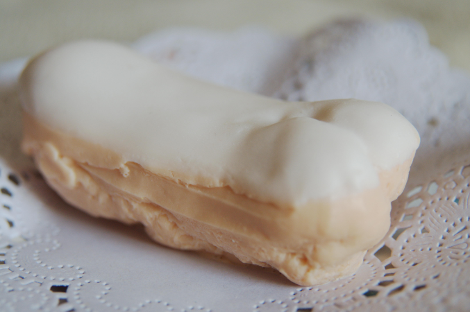 Аппетитный пост))) Я мыльные  пироженки делать не умею,но с удовольствием смотрю на сладко-мыльные работы. Света,эклерчику лучше шоколадную глазурь,так вкуснее)))