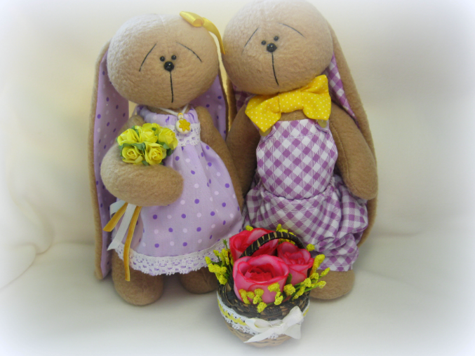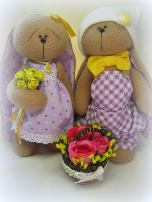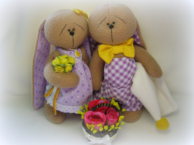 Очень часто заказывают в сереневом)))Поэтому сново парочка сиреневых зайчиков))