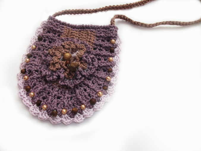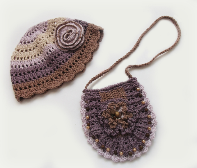 Комплект в кофейных тонах из шапочки и сумочки для девочки. /+ схемы/