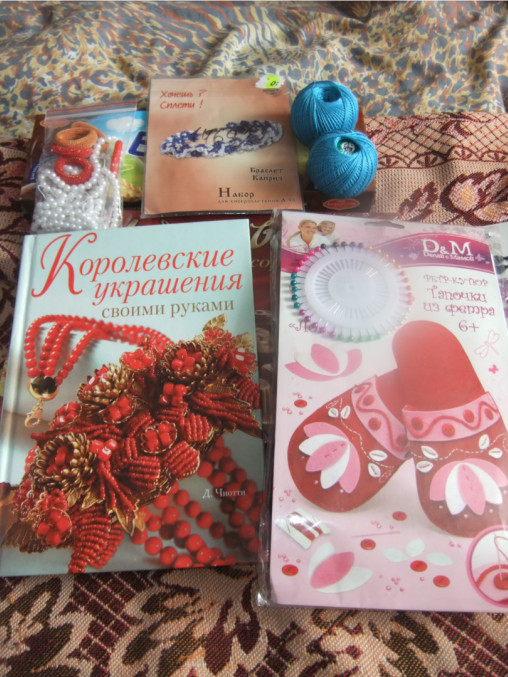 Набор для плетения браслета. И СУпер книжка по изготовлению украшений! Дочь была от нее в восторге. Я думала это мне))) Оказалось ей))) Ниточки для крючка мне, Наташ, обещаю научиться вязать)))