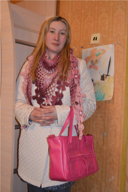 Очень здорово смотрится на моем светлом пальто. И хорошо подошла к сумке, которую мне муж пошил недавно)))