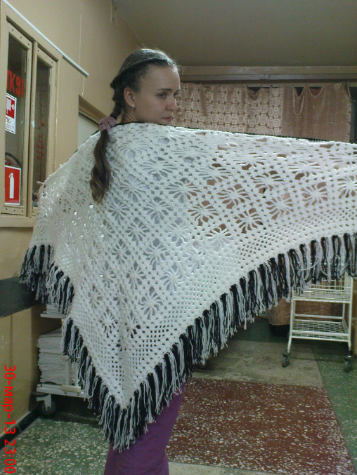 спасибо, на нитках не было этикетки у нас они самые дешевые, но и самые теплые, у меня самой такая шаль розовая, зимой на работе спасает