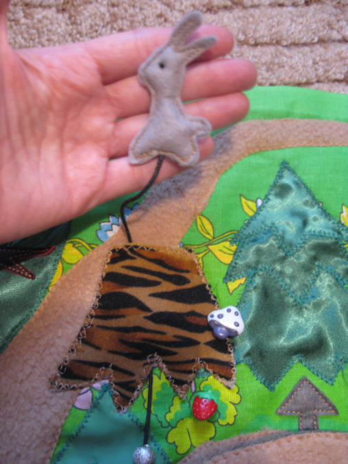 Зайчик живет в пеньке, прячется,если потянуть за веревочку)))