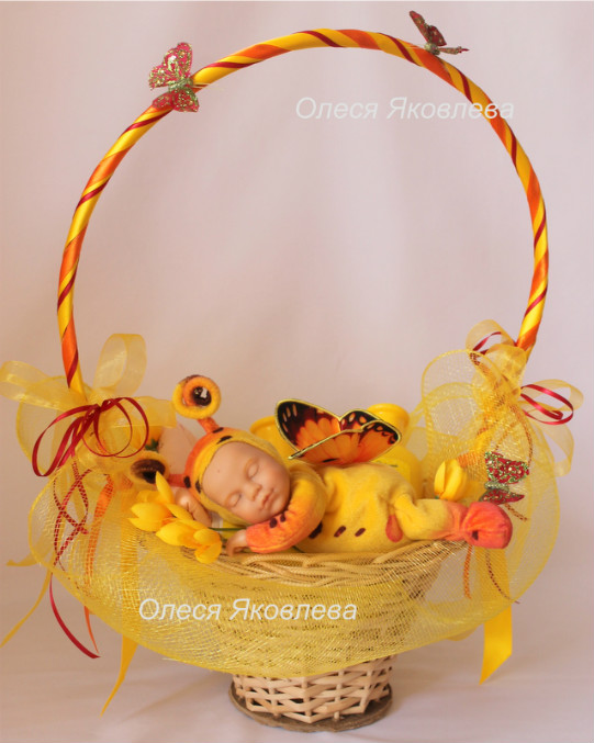 Моя яркая солнечная корзинка для молодой мамы и новорожденного с очаровательной куколкой-бабочкой и косметикой для мамыша!