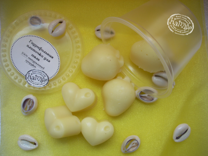 Гидрофильные плиточки с эфирным маслом ели, он скорее незаметный, чем просто лёгкий, мне нравится в плиточки добавлять неочищенный пчелиный воск, тогда плиточки имеют нежный медовый натуральный аромат. В этот раз положила больше жидких масел, чтоб быстрее плавились и впитывались.