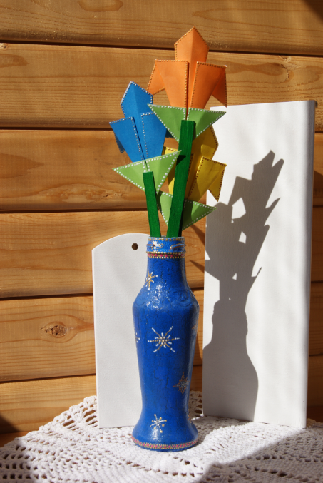 Поделки с детками.вот такую вазочку с цветочками оригами мы сделали с Алисой к празднику в садик:)