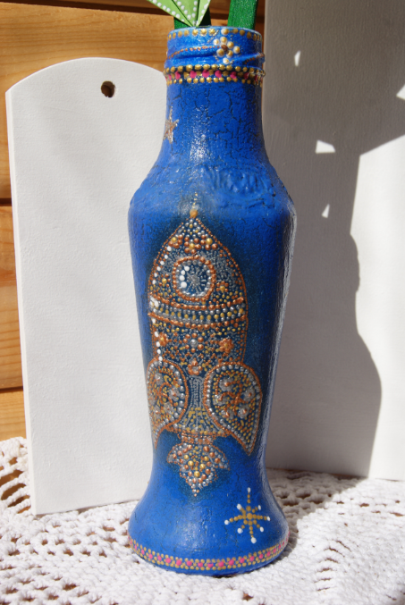 бутылочка из-под кетчупа, одношаговый кракелюр, точечная роспись:))))