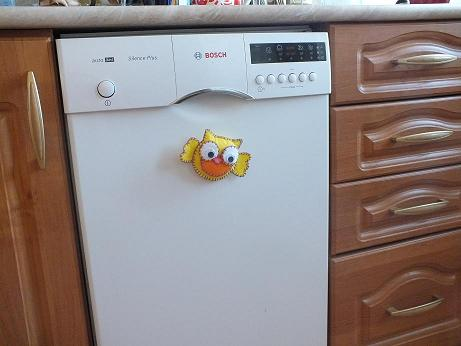 У всех магниты на холодильнике, а у меня Совун на посудомойке поселился :)