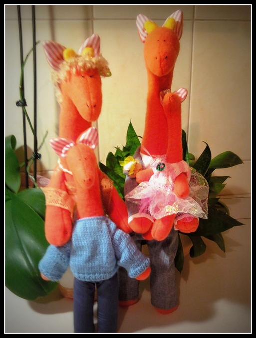 Семейство Длинношеевых собрались на ежегодный День Пряников:)) Нарядненько приоделись и решили перед уходом запечатлеть приятные моменты. Вот любящая семья в полном составе: папа Василий, мама Мария, сынуля Мирон и дочурка Тая