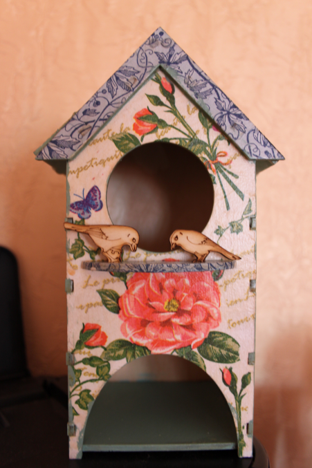 Симпатичный домик получился))) Для первого раза сложная работа, большие мотивы клеить пришлось.Но , главное, что понравилось! С каждым разом лучше будет получаться)))