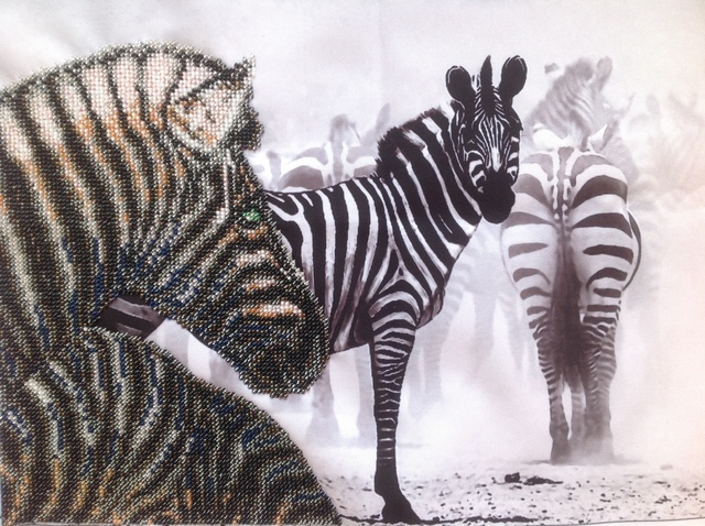 Красиво. И сюжет такой необычный. А дальние зебры - это напечатанный рисунок, он не вышивается?