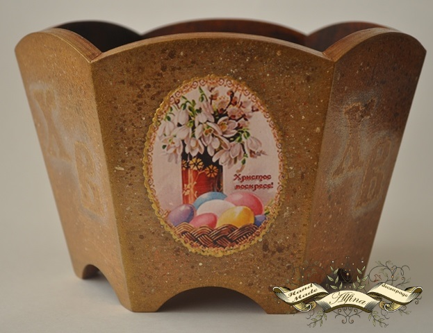 ты знаешь, тут вот как-то здорово совпала сама форма заготовки и и яично-округлые мотивы и надпись через трафарет - потому и результат отличный!