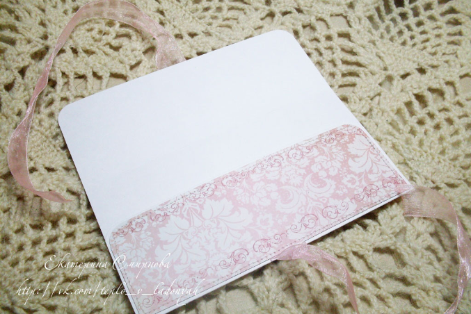Конверт - бумага для акварели, скрапбумага. чипборд-рамка, лента-органза.