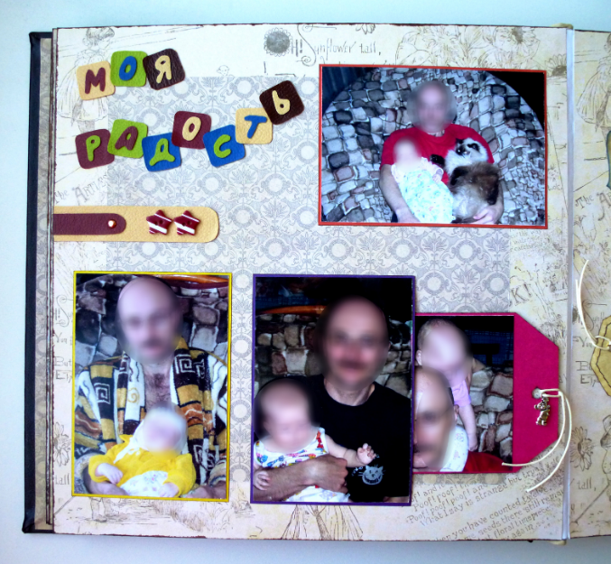 Все украшения: рамочка, поворотные ручки, цветок импровизированный.... все собственного изготовления. Покупала только бумагу для фона. Бумага, на которой сделаны надписи и теги, а также для записи пожеланий состарена вручную кофе.