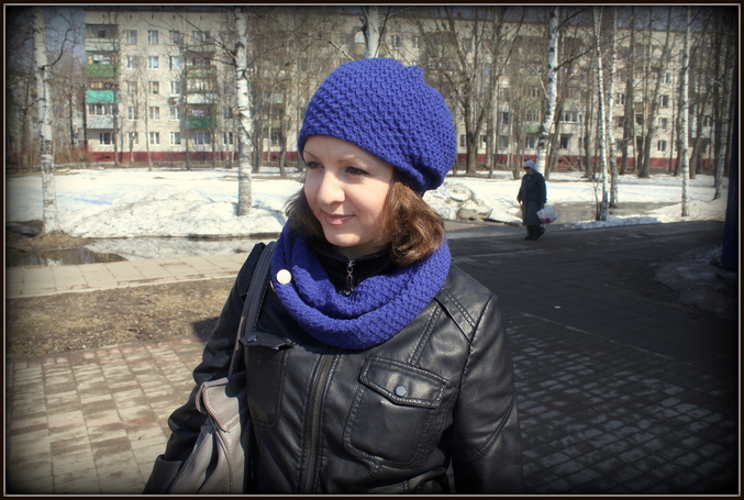 Когда морозы отступили, решила на весну связать комплект из шапки и снуда. Опомнилась называется... Вообщем, пока связала, уже и весна наконец наступила. И сразу тёплая и солнечная. И носила я свои обновки всего недельку где-то. А сейчас уже теплынь такая, что уже и не наденешь))