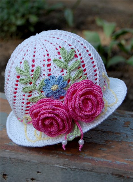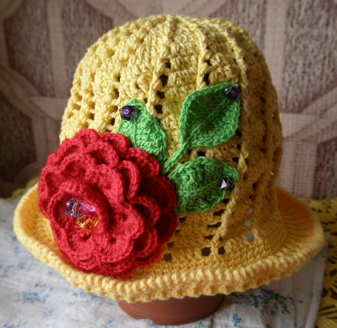 Панамка состоит из 16 рапортов, рассчитана на ОГ 48-50 см. Для ее увеличения или уменьшения на 1,5-2 см можно добавить или удалить один рапорт. Каждый ряд начинается с 3 петель подъема.