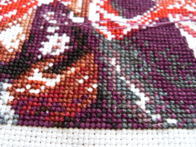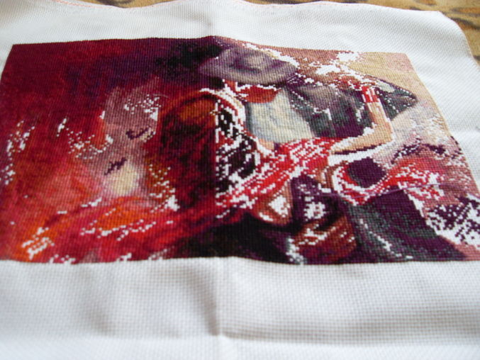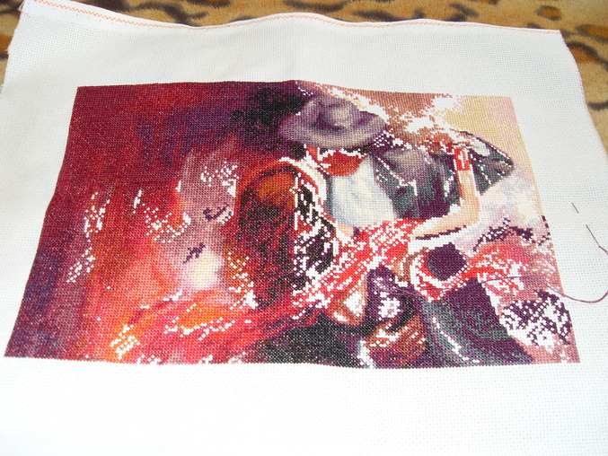 Как я Вас понимаю!!!! ТАНГИ эти они очень утомляют!)))))) Я Миднйат Дэнс от Дима мучаю уже 1,5 года и конца и края ему не видно! У меня там канва 18... Тоже откладываю, потом продолжаю, потом опять... Но у Вас вообще все в красном цвете, для глаз ужас, хотя сама картина красивая)))