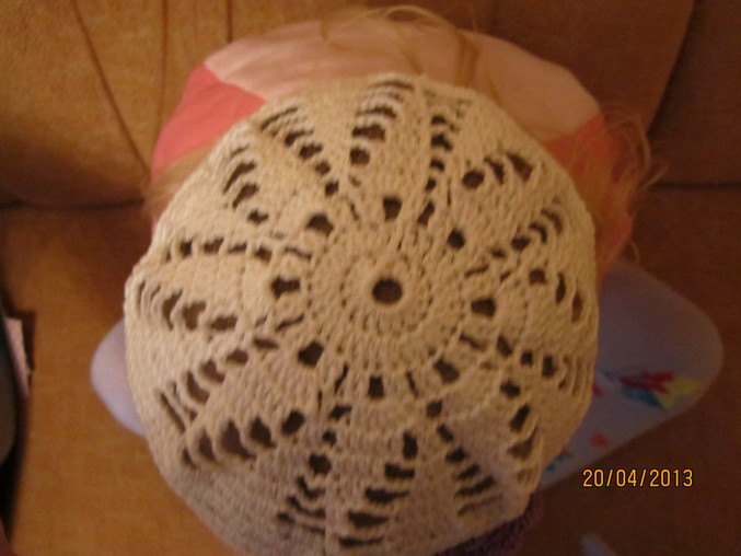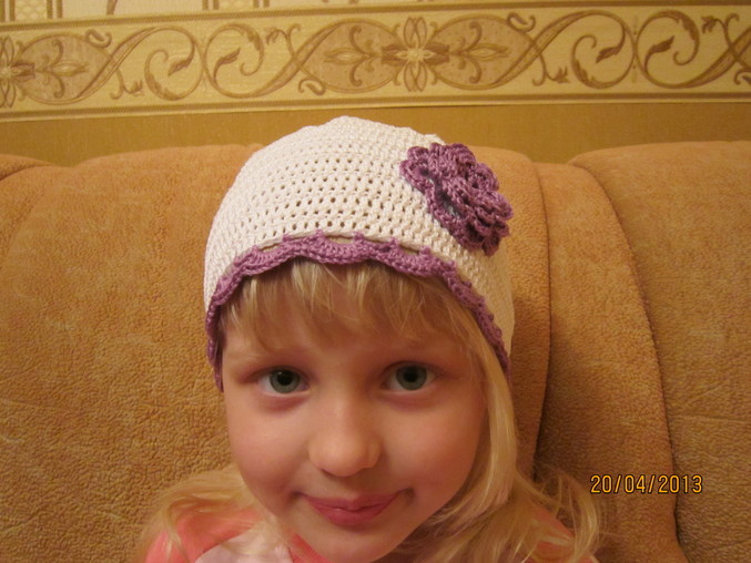 Да, точно по схеме, потом по кругу столбиками с накидом. Нитки ирис, тоненькие, но на двухлетке она слегка свободненькая. У вас видно, что нитки толще. Головы у всех разные, конечно. Да и у старшей голова маленькая для 5ти лет. ))