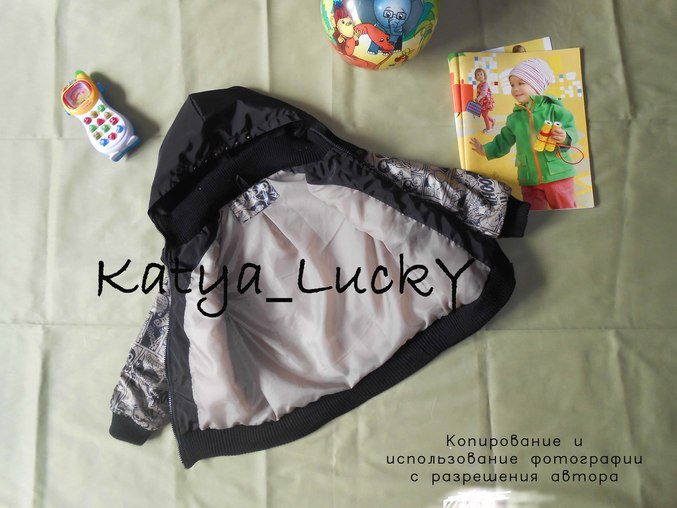 Куртка – верх – принтованный принц и однотонный черный джордан, полочка и спинка куртки утеплена Alpolux100ед.+на подкладе подкладочный шелк, рукава без утеплителя +на подкладе поларфлис. Для декора добавлен трикотажный подвяз, контрастные к черному кнопки, люверсы, холнитены цвета антик (сочетается с основным цветом принта), планируется утяжка в кап черного цвета+фиксаторы цвета антик (не успела доехать купить).
