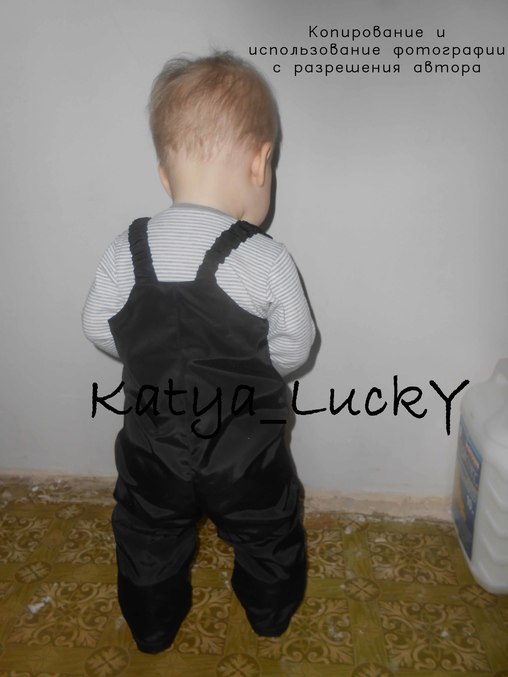 Специально попробовала эту выкройку без изменений пропорций и функционала (мне было интересно, на сколько удобно использование без центральной застежки – молнии). В принципе, неплохо, одевать несложно, но я бы добавила ширины немного. Из-за того, что моделька неширокая, утяжку по спинке не делала. Не стала выполнять и карманы. Лямки не на пуговицах, а на фастексах. На Андрее смотрится так (за фон сори, ремонт полным ходом).
