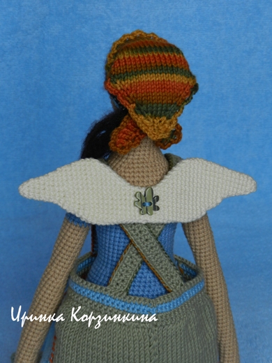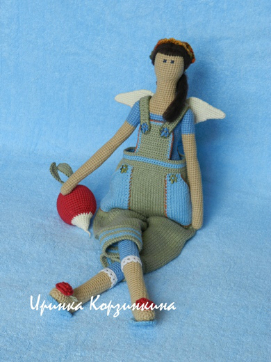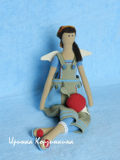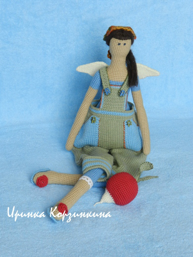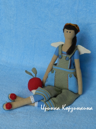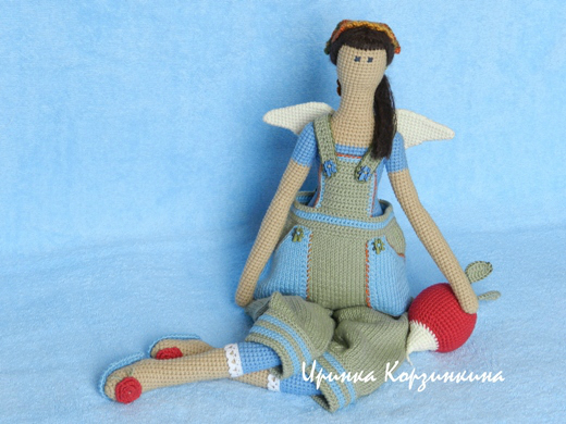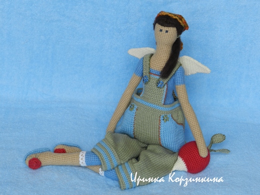 Фотографии выложила новые. Садовница доработана))). У нее выросли крылья. Правда, вязала их по памяти, не было выкройки под рукой. Поэтому форма немного другая. Не угадала слегка))).