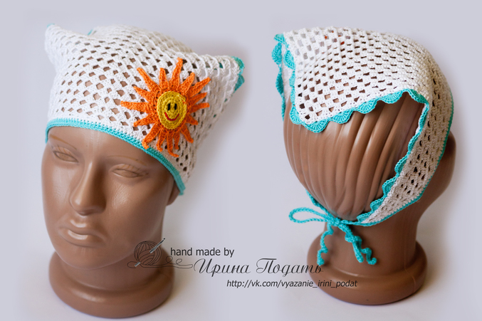 Ира, косыночка очаровательна) Тоже связала по вашей схеме, вот только осталось приделать завязочки, у вас они какой длины? Не соображу сколько см лучше сделать)
