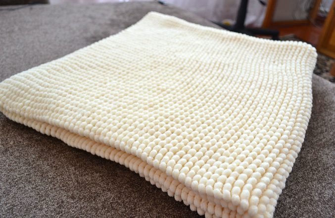 да да))просто если вязать ряд лицевыми ряд изнаночными получается вязка тонкая и жиденькая,а если только лицевые,помпончики идут на 2 стороны и получается как двойной))ниток ушло полкило (упаковка).Я беру нитки на складе,упаковка 350 р там стоит.но в розницу гораздо дороже((