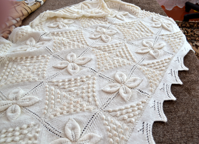 Ну все, я теперь поняла, думала, что у вас двойной)))) пледик. Сразу не поняла, как он вяжется, а получается, слой-то один, просто он с одной и с другой стороны одинаковый. Вот балбеска! Наверно накладно получится, мне надо 2 штуки вязать, это ж сколько пряжи надо. А какая у нее цена? У меня схемка вот такого пледа