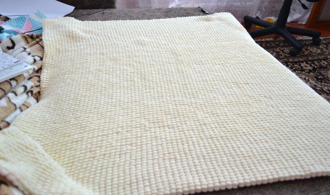 Ясненько, в розницу наверно рубликов 500 будет, если не больше. А мне сейчас только что сказали, что плед получается грубоватым и не эластичным. Вроде как лучше из этой пряжи большие пледы вязать