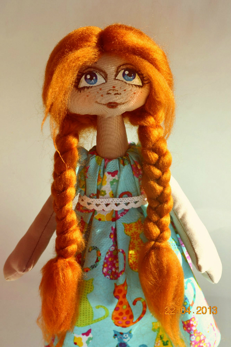 Это волосы приваляны или пришиты? а личико это Вы сами рисовали,Вы художник ,учились где то?