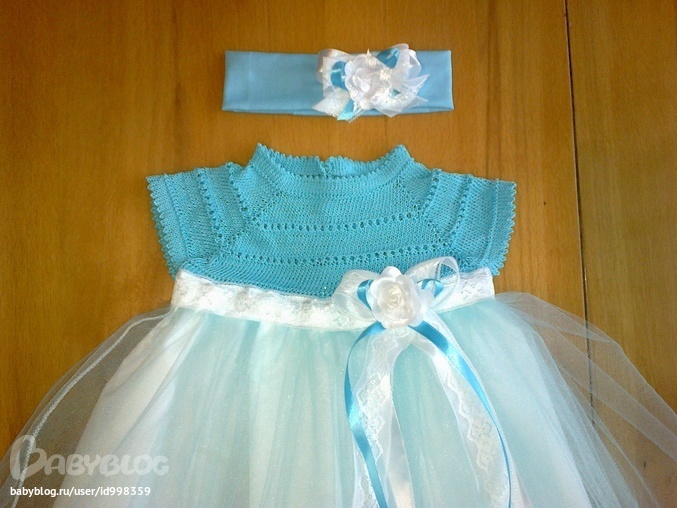 Платья из американского нейлонового фатина с вязанной из х/б пряжи кокеткой.