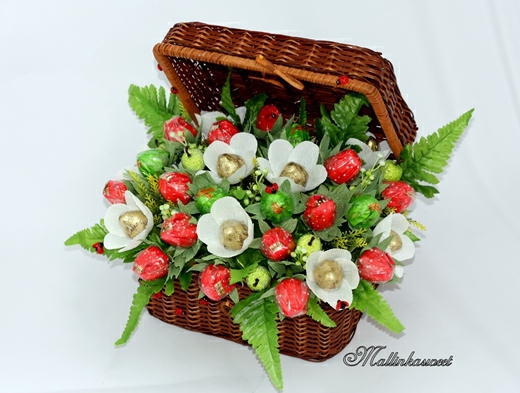 Маша, ну все просто загляденье!!!А конфетки в шоколадном тортике вапще отпад "Победа" очень вкусные!!!!И сундучок очень классный.Хотелка моя, землянички)))вот руки не доходят(((,пока вдохновения нету((