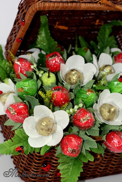 Очень красиво! Но у меня тоже вопрос по поводу землянички: это полисилк такой или красная конфетка упакована в крапистую пленку?