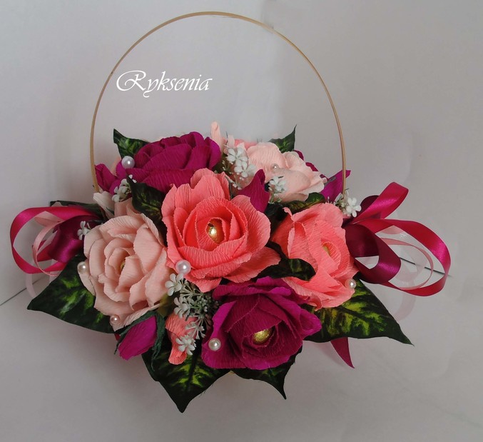 Спасибки! МК нету, попробую объяснить на словах. Сворачиваешь ленту по типу цифры 8, но только чтобы хвостики оставались, как у банта, делаешь таких штук 4-5 разных цветов или одного, как угодно, затем накладываешь один на другой, но так, чтобы получился какбы цветок с лепестками, то есть все эти восьмерочки должны быть видны ,а не друг под другом, затем все склеиваешь горячим клеем. Надеюсь, понятно объяснила, если что спрашивай