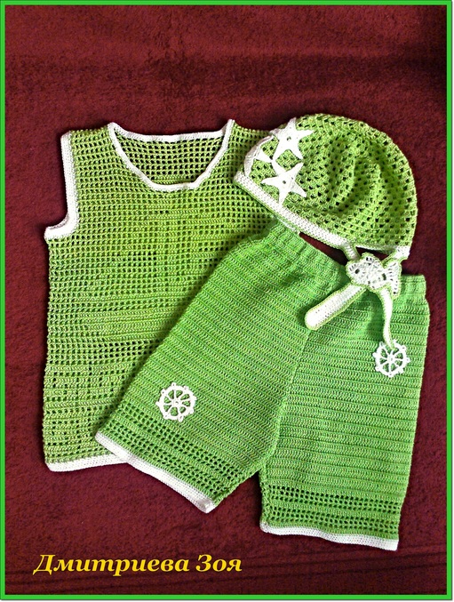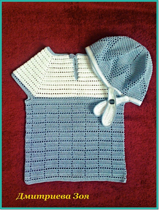 http://tusendria.xn----mtbqfo1a4d.com/post166152907/ это схемка шапочки, но она не совсем точная, я раз 20 перевязывала, пока не подобрала правильно! Когда будете вязать донышко, делайте прибавления в ромбиках до тех пор, пока не свяжите нужный Вам диаметр, а затем уже переходите на сам узор, иначе если будете вязать по схеме, там получится совсем маленький диаметр (где-то на год-1,5). А маечку я вязала так: сделала обычную кокетку и добавила узор: 9ст. с/н + 1в.п.Так вяжите 4 ряда, а 5-й ряд филейная сетка (1 ст. с/н + 1 в.п.).